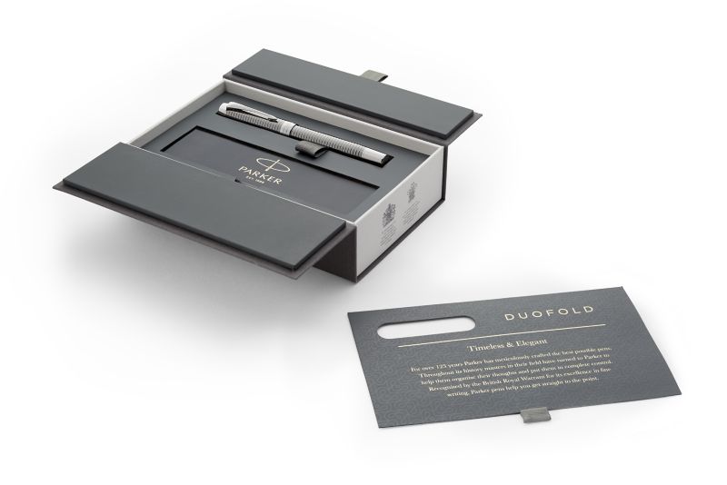 Ручка роллер Parker Duofold Prestige Ruthenium Chiselled CT от официального дилера Parker в Благовещенске. Вы можете дополнительно заказать гравировку, которая подчеркнет Вашу оригинальность и придаст памятность статусному подарку. Все ручки Паркер поставляются в фирменном футляре.